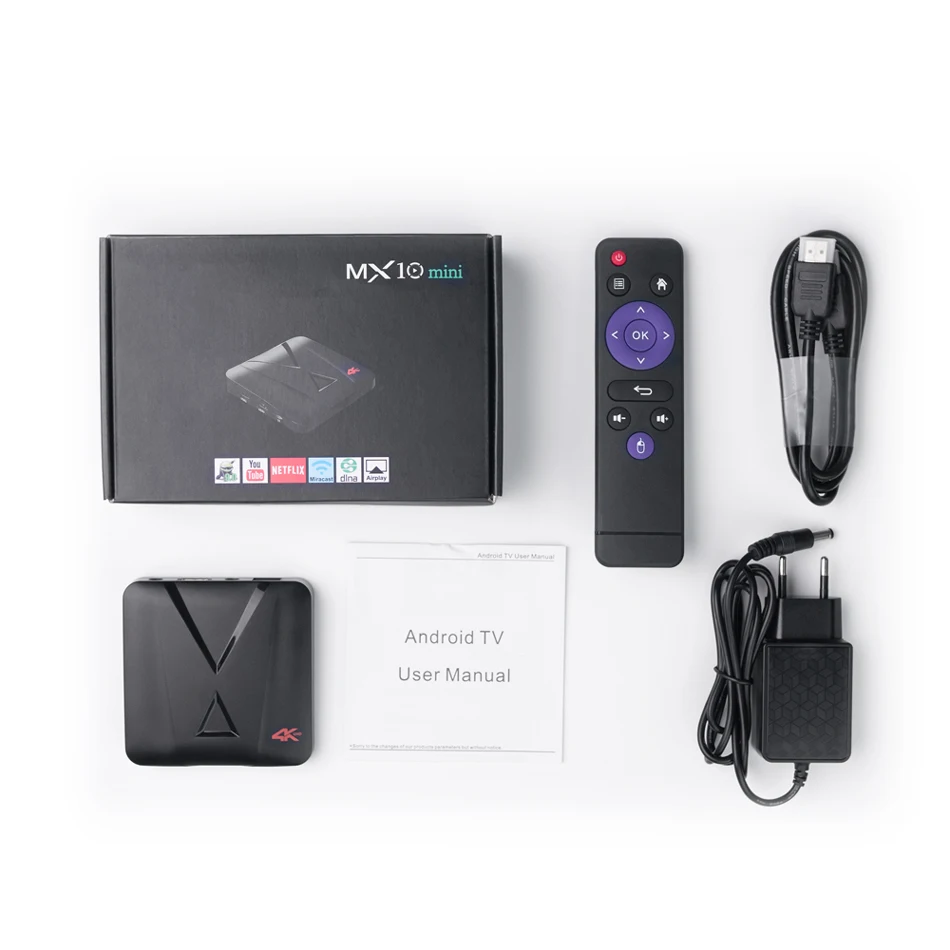 MX10 MINI TV Box Remote Control Power Adapter HDMI Cable