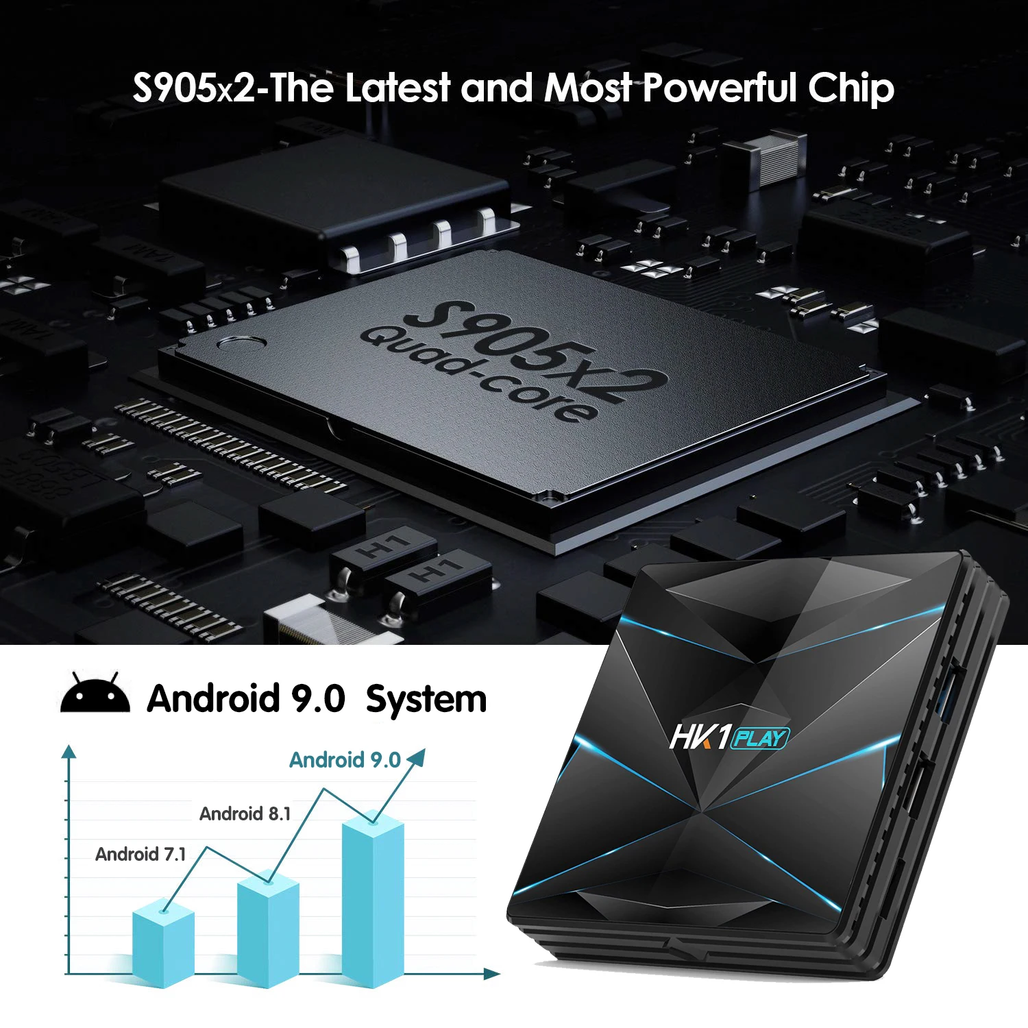 HK1 PLAY Smart Tv Box Android 9.0 Set Top Box 4K Mi Tv Boxs 4gb 32gb 64gb 128GB Quad Core media player Support IPTV PK HK1 MAX M