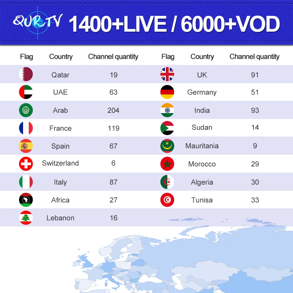 BOXPUT QURTV French Arabic Africa IPTV Subscription for Android Box Smart IPTV M3U Iphone IOS and Mag Box